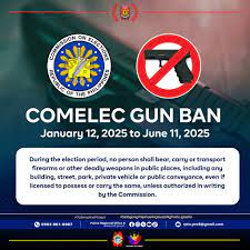 THE PEOPLES ANTI CRIMES PROMOTIONS UPDATES TODAY UPDATES JANUARY 10, 2024 ON CRIMES IN OUR SOCIETY WE GATHERED DATA FROM NEWS AND GOVERNMENT WEBSITES AND OUR CAMPAIGN AND PROMOTIONS. OUR DATA GATHERED FROM NEWS "Election gun ban starts Jan. 12" OUR TOPICS AND ISSUE THIS WEEK AND INFORMATION'S IS ABOUT ¨ELECTION GUN BAN STARTS JAN 12"¨. SA ATING PAG-ANTABAY SA MGA KRIMEN SA LIPUNAN NGAYON AY PATULOY TAYONG KUMAKALAP NG MGA DATUS HINGGIL DITO AT ATING PUSPUSANG IPINOPROMOTE ANG PAGSUPIL SA ANUMANG KRIMEN AT MAGPANUKALA NG MGA SISTEMATIKONG HAKBANG NG PULISYA AT MGA TAO NA MAGING CONCERN SA KAPALIGIRAN LABAN SA KRIMEN AT MAGKAISA AT MABUKLOD NA SUMUSUNOD SA HUMAN RIGHTS AT LEGAL AT EQUAL JUSTICE UPANG MAKATULONG AT HINDI DAGDAG PROBLEMA PA SA LIPUNAN PARA SA KATAHIMIKAN AT KAUNLARAN NG PAMUMUHAY.